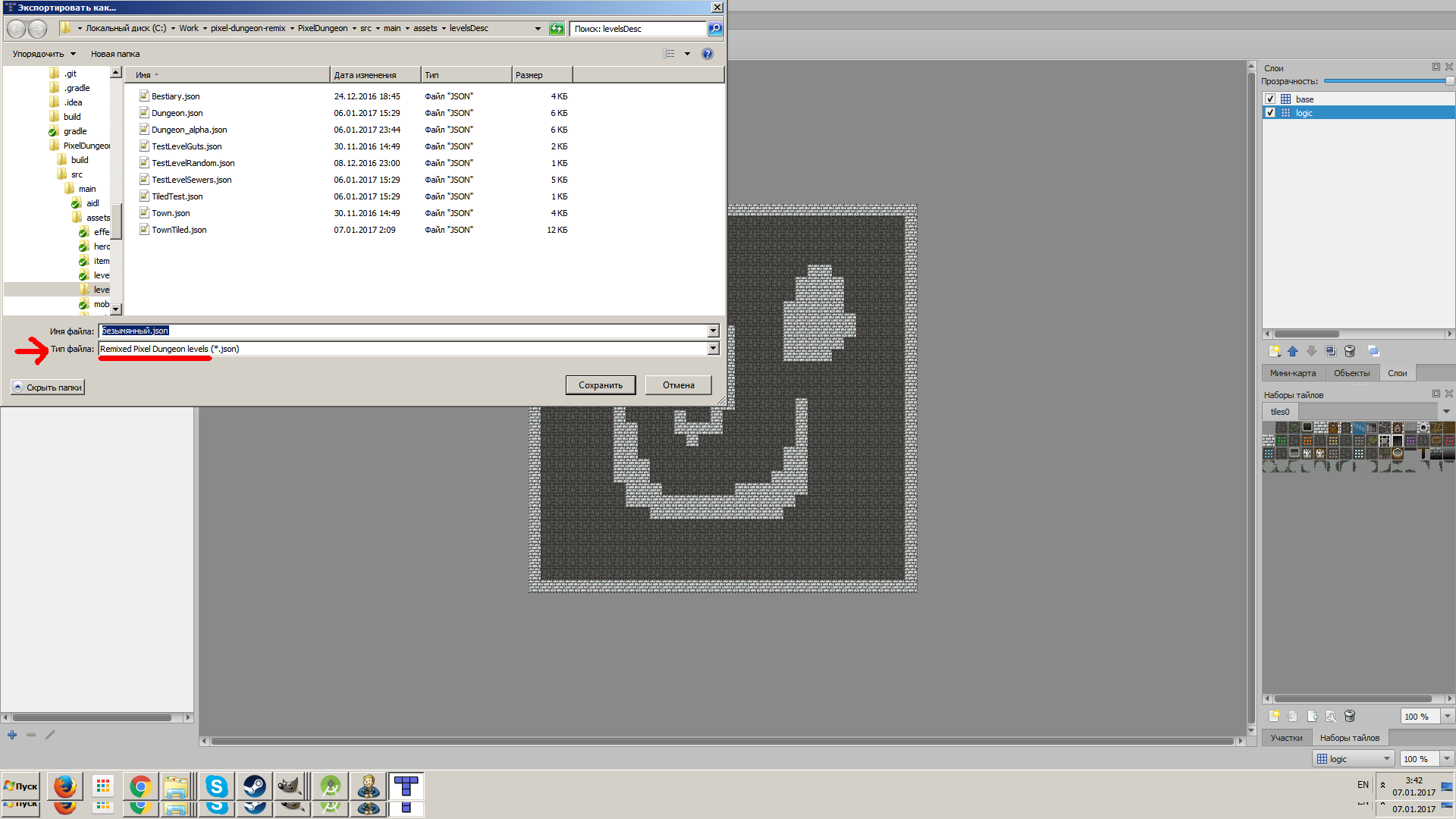 Сохраняем тайлсет под желаемым именем, после чего возвращаемся на вкладочку, где производится редактирование карты